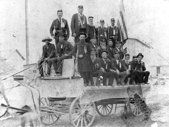 Picture of a parade-wagon loaded with civil War Veterans, Time May 30, 1890. Place Big Run, Penna. This is an annual Parade From the Center of town (the old railroad Station) N.E. to Church St., turn left And March to The Burial Ground at the end of the road. A Distance in excess of 1 and a half miles. Picture submitted by David B. Schneider