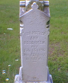 Wife of Andrew Baughman Died February 15, 1896, age 76 years, 11 months, 13 days