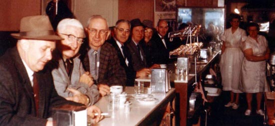 Contributed by Bill Mohney. l. to r. Chet Mohney, Oran Mohney, ?? Himes, Dalph McNeil, Kenny Irwin, unknown, and Burtram Seibert. If you can identify any of the others, please contact us.