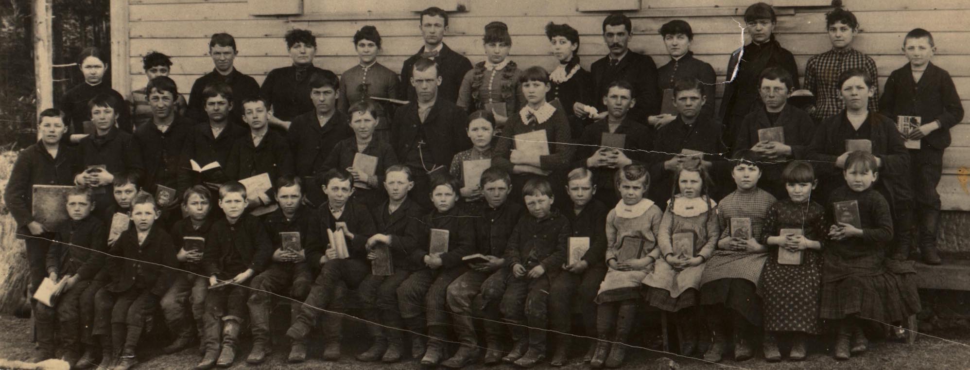 click on the picture to see a larger imageThe picture belonged to Bill's late father, Chester Mohney. Because his father was born in 1909, Bill believes the photo was taken sometime after 1915 and that is possible his father and some of his siblings are in the photo.