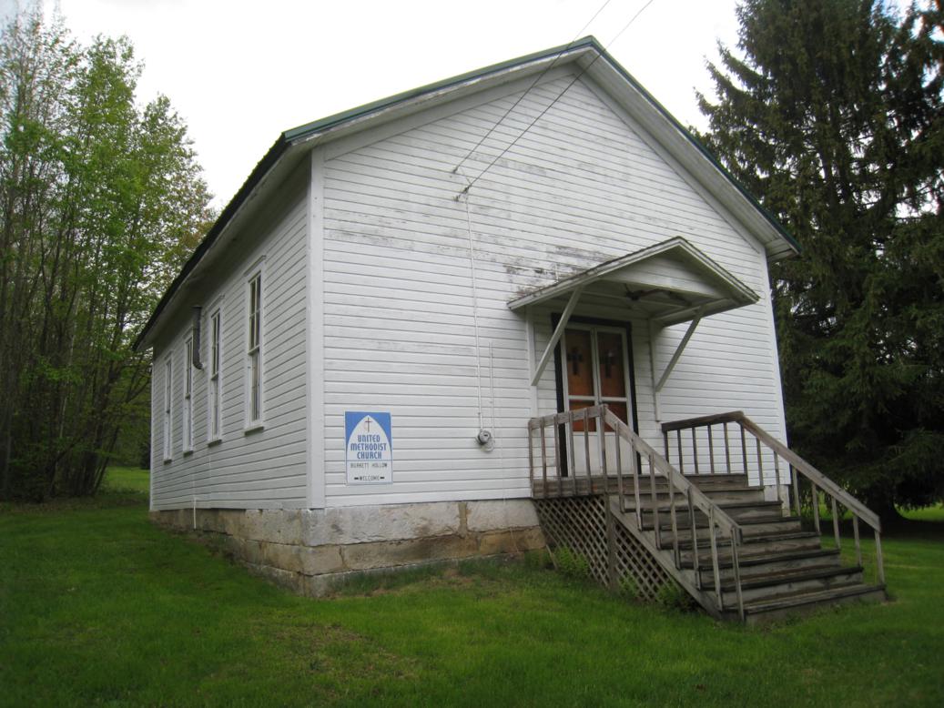 The first services of the Evangelical Church were held in 1880 in the Burkett Hollow school house. In 1884 the