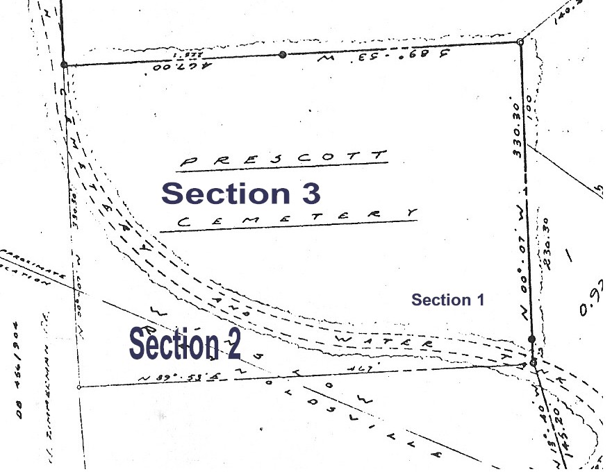 - Section 3 - the area at the small drive on the right side of the road. This section contains the Prescott Family plot