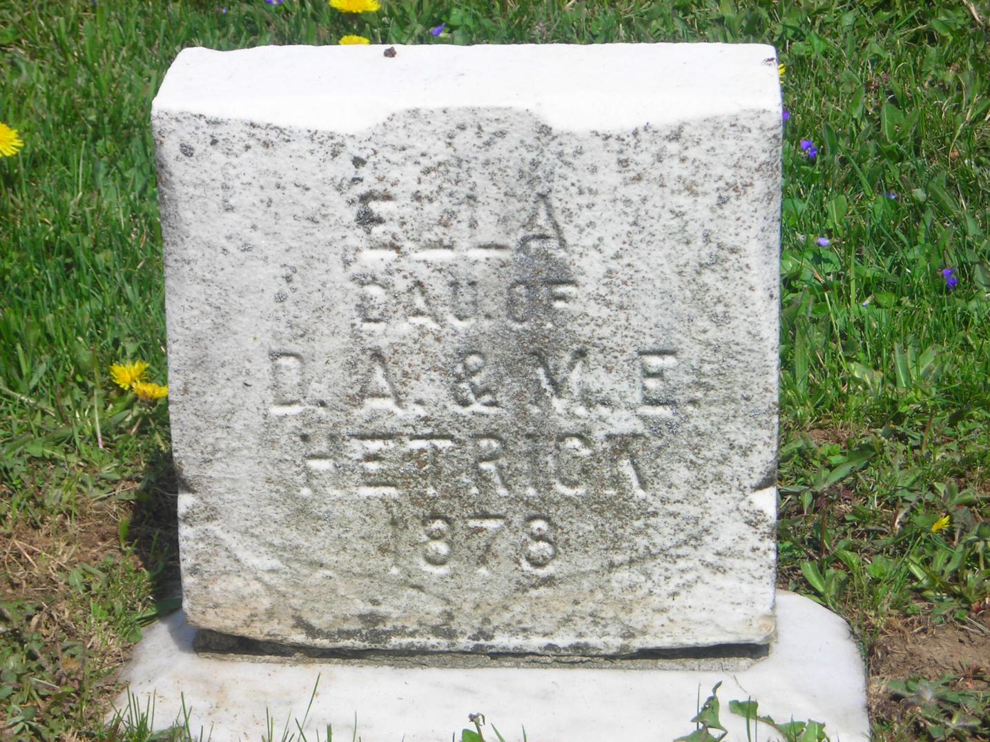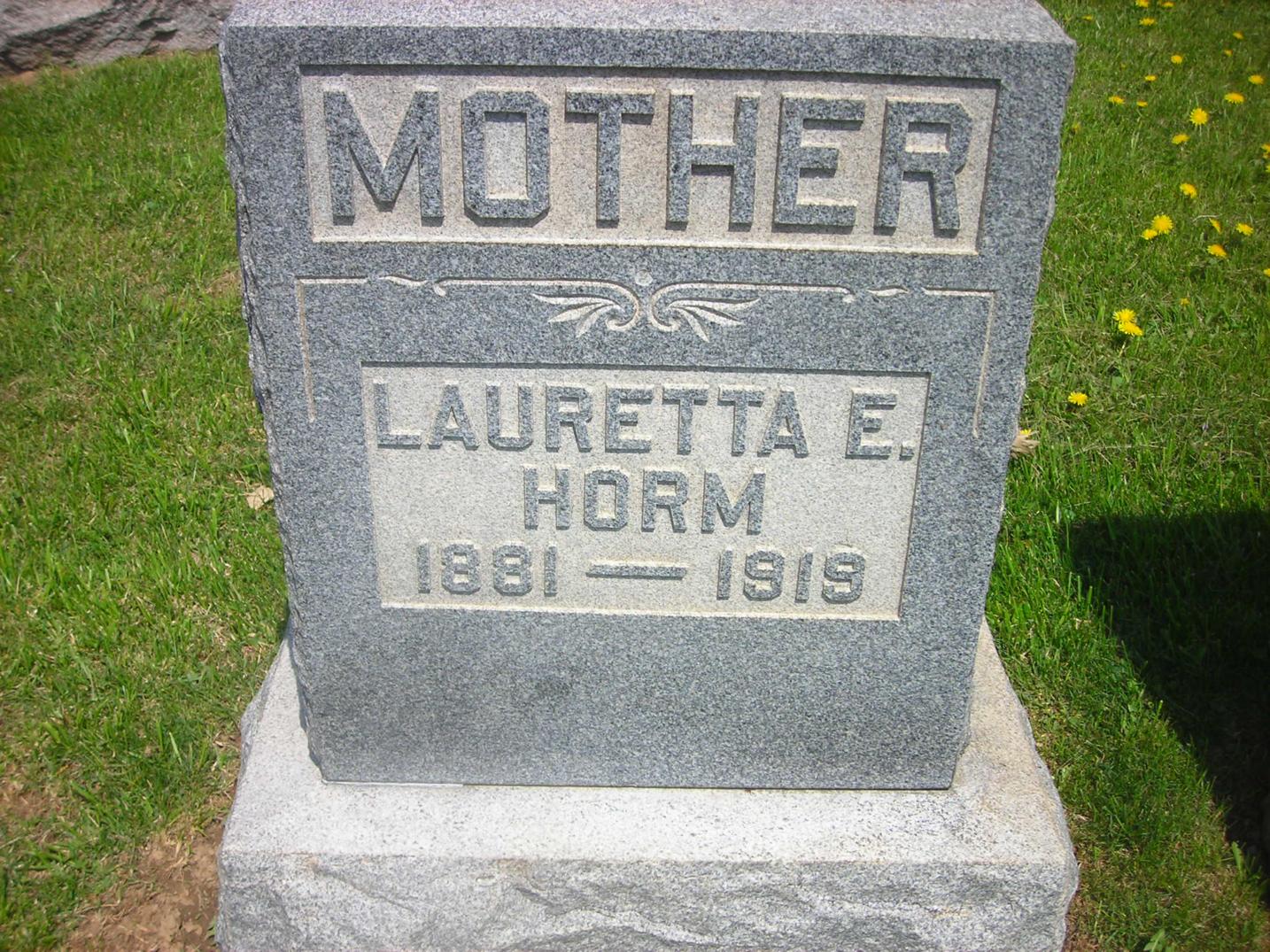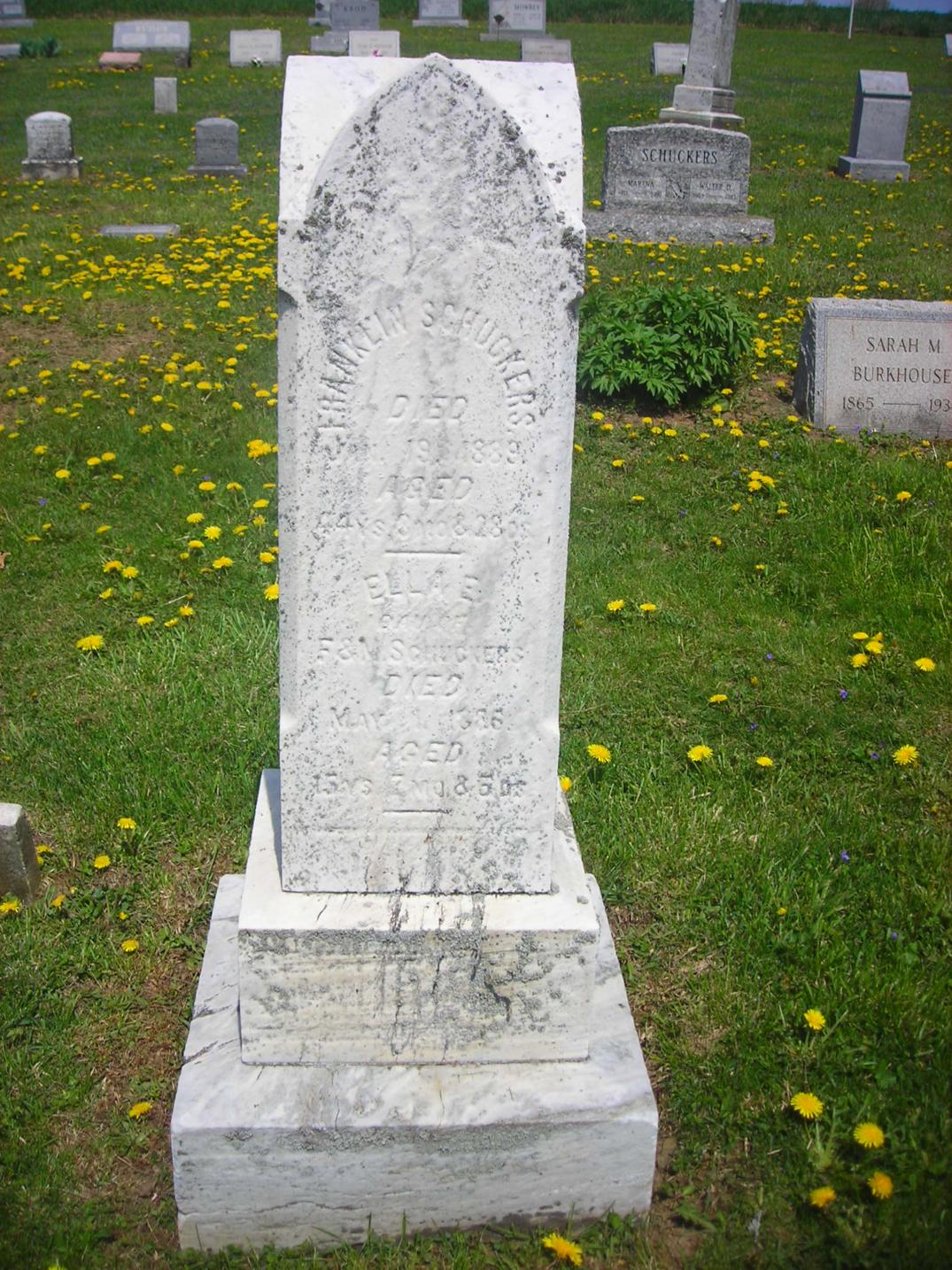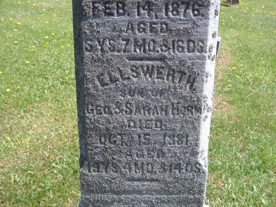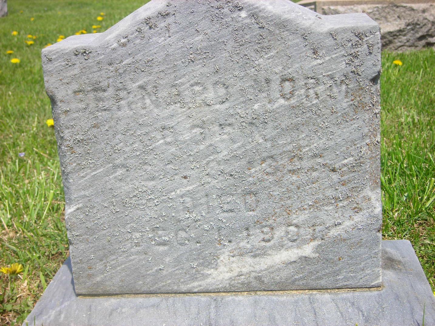 Section Row Plot Surname First Name Middle Name Other Name Date of Birth Date of Death Age at Death Notes 1 1 1 Horm Bernard 9 December 1899 1 December 1901 1 1 2 Horm Audrey 1915 1916 1 1 3 Horm Lauretta E 1881 1919 Mother 1 1 4 Horm Lewis M 26 September 1875 7 March 1965 89 years 5 months 11 days He is a fourth generation descendant of his great grandparents, John and Eve Horm, pioneer settlers from Germany who came to America in the late 1700's. They were buried in this cemetery in 1841 and 1851. This cemetery is on what was a large tract of forested land owned by the Horm family the first grave here was that of Lewis Horm's grandmother Elizabeth Horm, who died in 1839. This stone and all the other natural sandstone markers in the cemetery are the handiwork of Lewis M. Horm. 1 1 5 Doverspike Carmen Horm 1902 1980 Monument 1 1 5 Doverspike Charles A 1887 1935 Monument 1 1 6 Horm Mary 1857 1924 1 1 7 Horm Scott M 31 March 1880 14 April 1908 1 1 8 Horm Sherry Ann 1945 1950 1 1 9 Heller Ramona M 8 September 1923 9 April 2004 1 1 10 Pantall Infant Infant daughter of S.W. Pantall 1 1 11 Kennedy Mildred Horm 1903 1953 1 1 12 Horm June I 10 June 1913 16 September 1990 1st Lt. Army Nurse Corps 1 2 1 Beck Cleveland 6 September 1885 13 December 1965 1 2 1 Beck Mary 15 March 1898 31 December 1963 1 2 2 McAninch Lydia S 12 September 1917 20 November 1989 Daughter 1 2 3 Craven John A 16 June 1854 9 October 1902 1 2 3 Craven Sara Jane 10 July 1857 13 October 1945 1 2 4 Craven Florence L 1895 1999 1 2 4 Craven Harry T 1878 1963 1 2 5 Craven Flora N 4 August 1901 23 years 1 month 4 days Wife of H.T. Craven 1 2 6 Shoemaker Peninnah 20 February 1890 85 years 7 months 2 days His Wife 1 2 6 Shoemaker John 7 February 1898 90 years 6 months 1 2 7 Shoemaker Ellis M 1841 1919 1 2 7 Shoemaker Jennie P 1858 1951 His Wife 1 3 1 Burkett Sally M 1887 1976 1 3 1 Burkett James A 1883 1970 1 3 2 Snyder Mable E 1885 1960 1 3 2 Snyder Harry C 1885 1975 1 3 3 Schuckers Merle F 1904 1905 1 3 4 Schuckers Cora M 1905 1907 1 3 5 Schuckers Twins 1910 1 3 6 Schuckers Sarah H 1881 1955 1 3 6 Schuckers William F 1874 1947 1 3 7 Schuckers Elsie S 1892 1961 1 3 8 Schuckers Harry F 1877 1960 1 3 9 Unknown inscription is totally eroded 1 3 10 Schuckers Franklin 19 January 1889 44 years 3 months 28 days footstone with F.S. 1 3 10 Schuckers Ella E 1 May 1886 15 years 7 months 5 days footstone with E.E.S. 1 3 10 Schuckers Matilda 22 March 1849 30 April 1933 1 3 11 Schuckers Oscar G 1880 1928 1 4 1 Kroh Arthur W 2 June 1912 21 August 2002 1 4 2 Swab Jacob Henry 1898 1962 1 4 3 Burkhouse Sarah M 1865 1934 1 4 4 Burkhouse William H 1861 1940 1 5 1 Kroh Dorothy K 23 January 1919 2 October 2004 1 5 1 Kroh Annabelle D 23 November 1915 8 November 2004 1 5 2 Kroh Frank B 15 December 1879 12 March 1977 1 5 2 Kroh Minnie A 19 May 1881 3 March 1954 1 5 3 Hetrick Ella 1878 Daughter of D.A. & M.E. Hetrick 1 5 4 Schuckers Leona 1931 1 5 5 Schuckers Hazel 1934 1944 1 5 6 Schuckers Marena 1911 1999 1 5 6 Schuckers Walter D 1908 1983 1 6 1 Reed Twila E Smith 3 December 1892 4 January 1919 Wife of Roy Reed 1 6 2 Smith Jonathan 1845 1920 1 6 2 Smith Sarah A Swab 1858 1923 His Wife 1 6 3 Smith Minnie S 1888 1912 Wife of Galon Smith 1 6 4 Smith Christina Reitz 6 February 1841 14 November 1876 15 year 9 months 8 days Daughter of John and Mary Reitz and wife of Samuel B. Smith 1 6 5 Smith Infant 1912 Son of Galon & Minnie Smith 1 6 6 Smith William 1857 1905 1 6 7 Smith John B 15 August 1855 12 May 1880 24 years 8 months 27 days Son of Philip & Sarah Smith 1 6 8 Smith Sarah B 11 February 1890 71 years 11 months 11 days Wife of Philip smith 1 7 1 Smith Galon S 1889 1968 Co A 320 Inf WWI 1 7 1 Smith Cora E 1895 1988 1 7 2 Smith Jonathan 1897 1970 1 7 3 Raybuck Tory E Smith 1894 1975 1 7 4 Smith Farmer 1890 1980 1 7 4 Smith Alma M 1902 1984 1 7 5 Jones George Burkett 1905 1957 1 7 6 Burkett Emma 1868 1908 Wife of John M. Burkett 1 7 7 B M L 1 7 8 B L E 1 7 9 Burkett Mary E 1846 1933 seperate stone with M.E.B. 1 7 9 Burkett Peter 8 May 1892 51 years 3 months 1 8 1 Horm Leslie L 1881 1951 1 8 1 Horm May J 1885 1964 1 8 2 Thompson Albert L 1904 1987 1 8 2 Thompson Myrtle M 1905 1988 1 9 1 Bliss Sebastian 1853 1930 1 9 1 Bliss Rebecca 1862 1934 1 9 2 Bliss Harry L 1887 1980 PFC US Army World War I 1 9 3 Hice Samuel 1861 1889 1 9 3 Hice Sarah 1878 1 9 4 Burkett David E 21 January 1943 5 October 1944 Baby 1 9 5 Hetrick Paul A 1907 1948 Son 1 9 6 Hetrick Clay G 1914 1957 Son 1 9 7 Hetrick Margaret E 1883 1942 Mother 1 9 8 Hetrick Charles A 1877 1960 Father 1 10 1 Cathers Myron M 25 August 1902 22 March 1985 BM 1/C US Navy WWII 1 10 2 Cathers Robert J 26 February 1918 26 September 1994 MM 1/C US Navy WWII 1 10 3 Reed Martha F 29 December 1908 27 May 1998 1 10 4 Cathers Arminta 20 February 1880 11 September 1971 1 10 5 Schuckers Levi E 1913 1965 1 10 5 Schuckers Ahlene E 1911 2000 1 10 6 Sayers Alberta F 1912 1969 1 10 7 Smith Albert L 1883 1965 1 10 7 Smith Emily S 1885 1968 1 10 8 Hetrick Harold E 1910 1974 1 10 8 Hetrick Margaret E 1915 1 11 1 Fisher James F 1913 1963 1 11 1 Fisher Elizabeth J 1921 2002 1 11 2 Snyder Lawrence E 1903 1981 1 11 3 Snyder Darwin L 1926 1994 1 11 4 Keller Eileen D Snyder 1933 1 11 5 Keller Ricky R 1955 1993 1 11 6 Kroh Wayne E 1908 2002 Married 4 September 1938 1 11 6 Kroh Nora O 1916 Married 4 September 1938 1 11 7 Mowrey Homer J 14 October 1924 13 January 2000 Vet. US Army WW2 1 11 7 Mowrey Laura M 16 May 1920 1 12 1 Smiley Florence E Horm 1913 2004 Beloved Mom & Gram 1 12 2 Tonell Susan L 9 May 1969 1 12 3 Tonell William A 1924 2002 SSgt US Army WWII 1 12 3 Tonell Delma M Smith 1926 1 12 4 Peters James E 14 November 1918 14 July 1985 Vet USN WW2 1 12 4 Peters Nelda E 2 January 1930 1 12 5 Reed E Irene Snyder 1923 Married July 20, 1945 1 12 5 Reed H Eugene 1917 1990 Vet. WW2 - Married July 20, 1945 1 12 6 Reed Jeffrey Lynn 16 June 1962 19 May 2004 2 1 1 Beck Herman J 19 July 1890 15 February 1979 4 Div 47 Inf. SUP Co., WWI 2 1 2 Beck An