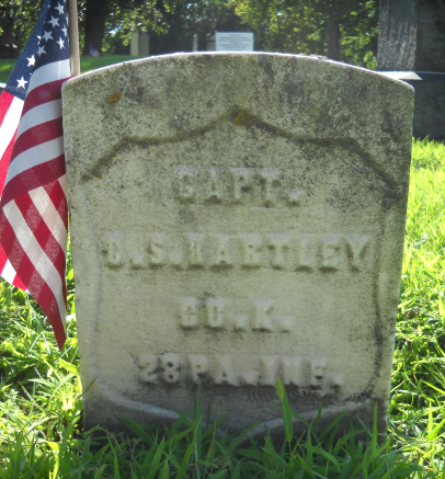 Enrolled June 20, 1861 at age 21 in Philadelphia; mustered in as Corporal, July 20, 1862; promoted to 1st Lieutenant, February 2, 1863; promoted to Captain.August 5, 1863; absent on detached duty as Judge Advocate of Court Martial at Washington, D. C. starting June 24, 1863 per Special Order No. 149. Headquarters, Department of War. Mustered out July 18, 1865 at Washington, D. C.