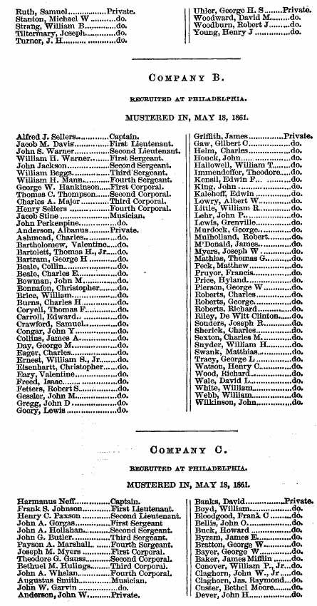 19th Regiment Pennsylvania Volunteers Muster Rolls