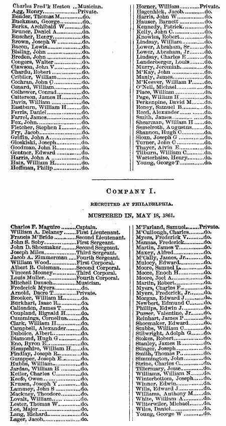 19th Regiment Pennsylvania Volunteers Muster Rolls