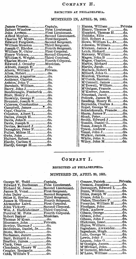 20th Regiment Pennsylvania Volunteers Muster Rolls