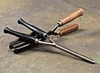 Curling Irons: Curling hair has never been an easy task. Today, we use electric curling irons, but in the early 1900s, curling irons had to be heated in a fire before they were ready to use. Beyond that, old curling irons actually worked much like the ones we use today. They were spring loaded, with a round attachment and a flat piece to hold the hair in place. The wooden handle offered only a little protection against burns.