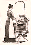 Enter electricity, and suddenly, laundry found itself throughly modernized. The wringer washer became the rage, a machine which not only washed , but, with the aid of two fixed rollers, also squeezed the excess water from the laundry. In spite of the Great Depression, by 1936, over 1.4 million washing machines were sold in America.