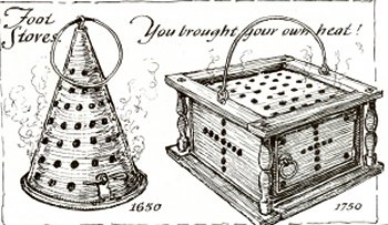 Churches were unheated primarily because of the dread of accidental fire. Thee were no chimneys in the early church buildings. In any event an open fire built in a large building that had been closed overnight during winter would do little more than start to thaw the walls out.