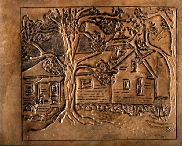 Embossed Leather Folder of Farm Scenes Above by Karen Demeke - Circa 2007