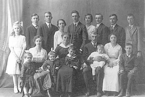 Front: Faye w/ twins - Jennie w/ Dale in front - Samuel holding Olive - Ida Swank Anderson - Lee