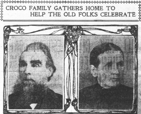 Mr. Croco is 84 and his wife 67 years of age, both hale and heart, and very active.They enjoy the respect and esteem of their entire community and church, as happily stated by their pastor, the Rev. Wycoff, in a speech made for the occasion.