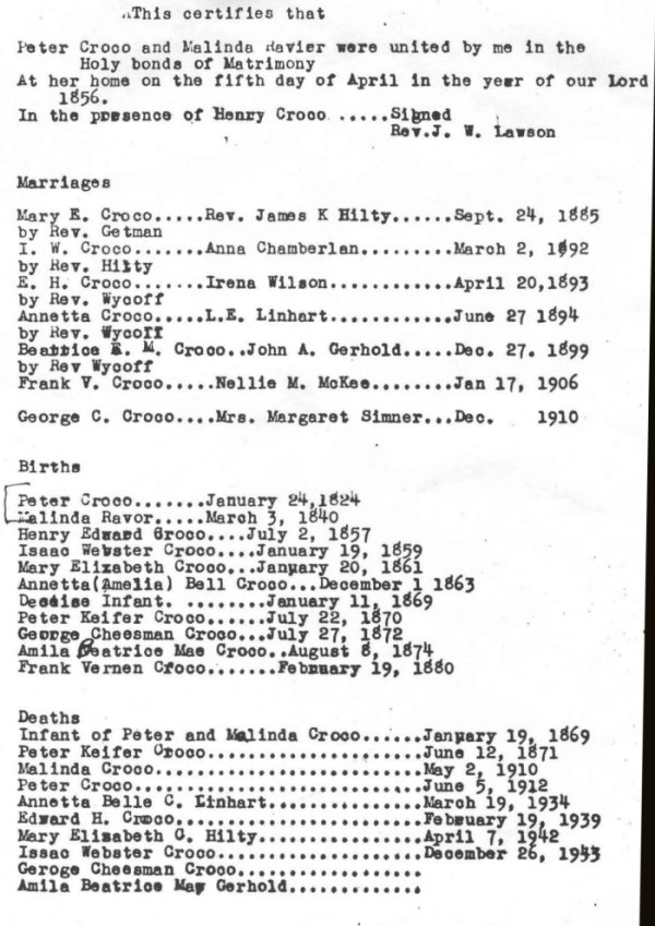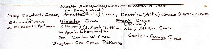 Far left: Melinda Raver Croco, Died 1910 ~ Far Right: Peter Croco, Died 1912