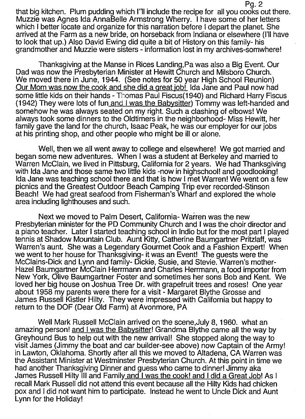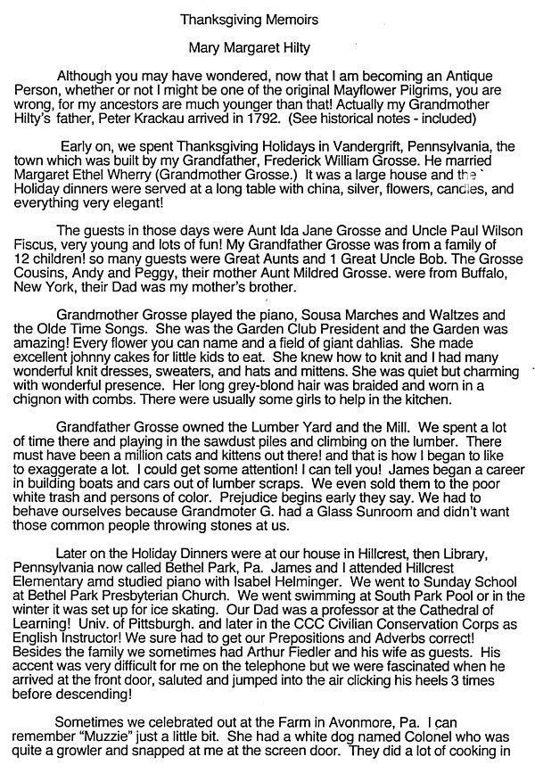 Thanksgiving Memoirs by Mary Margaret Hilty