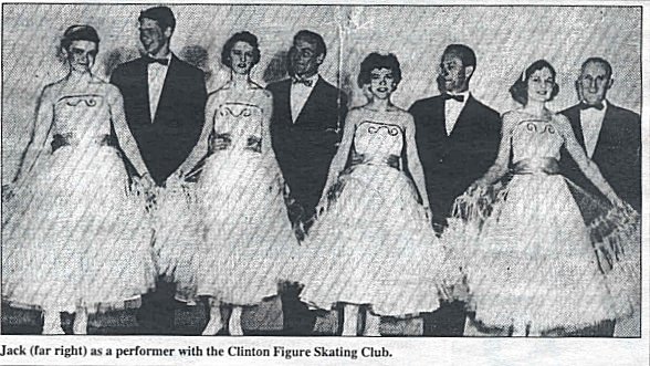 Jack was also a very popular figure at the Clinton Arena where he was a member of the Clinton Figure Skating Club for about 50 years. Jack, who was the first from Rome to join the Clinton club in 1955, was popular wherever he went, especially at the Clinton Arena, where he was very much in demand as a figure skating partner, and took part in many shows with well-known partners like Lois Desjardins, Sally Schintz and Alice Wesseldine.
