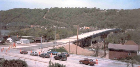 When he was in his middle 80s, a new bridge was constructed across the Monongahela River to replace the old one built in the early 1900s. During the construction period, he followed the work closely every day. During warm weather, he sat on his porch which had a birds-eye view of the work, and in cooler weather, he watched it daily from his living room window. During the preliminary opening day, Margeet and I walked with BJ and Chris out to the middle of bridge. BJ later took this picture. Because of his machinist background where he worked with tolerences within several thousandths of an inch, Dad believed that every job should be done to the best of one's ability. I can still remember as a young teenager when my brother Lou and I were doing some roof-tar patching around the chimney flashing. We were anxious to finish so we could go play baseball. I called down to my Dad, "Does that look good enough?" Dad took time to give us a little lecture about workmanship. "There is no such thing as good enough. It's either right or wrong!" It's advice we both long remembered.