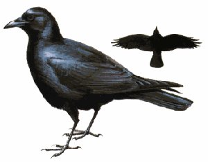 The American Crow is found in southern Canada and most of the U.S. They are very adaptable to civilization, and despite attempts in the past to eradicate them, they are more common than ever. Crows are very sociable and gather in communal roost on winter nights.