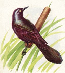 - The range of the Common Grackle is Canada and the U.S., mostly east of Rockies. Migrate in flocks. This species is a year-round resident in most of U.S. This big bird, with a wide spear-shaped tail, is a member of the blackbird family. it is common on suurban lawns as it seeks out insects. In late summer and winter, they often flock together in communal tree sites at night.