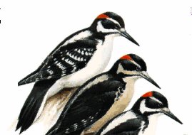 Range from Alaska and Canada to Panama, and are mostly permanent residents. The Hairy Woodpecker and the Downey Woodpecker are very similar in pattern, different mainly in size and bill shape, with the Hairy much larger in size.