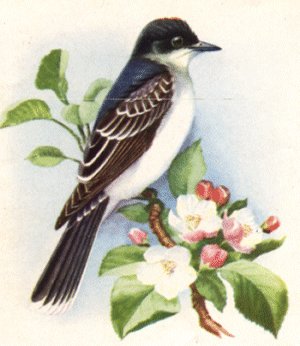 - The Eastern Kingbird ranges from central Canada to the Gulf of Mexico. Kingbirds are medium-sized flycatchers of open and semi-open country. Their name comes from their aggressize nature. It is common in the summer, perching on trees or wire fences, and sallying out to catch insects in midair.