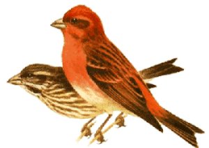- The male Purple Finch is not really purple but more an old-rose color. This species is common in the North and East and along the Pacific seaboard, but rare in between. Its habitat includes woods, groves, suburbs. Breeds mostly in coniferous and mixed woods.
