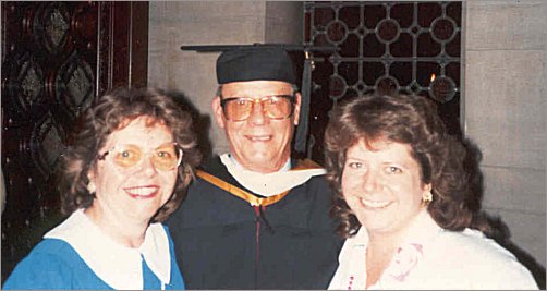 I applied, and was accepted by the seminary for the fall term in 1984. There was a retirement dinner for Margeet and me on a Friday night late in August and I started classes at the seminary on the following Monday, and after several years, I graduated with a M.A. in Religion in 1987. Son Dave, Dave and BJ with Chris joined Margeet and me for my seminary graduation.