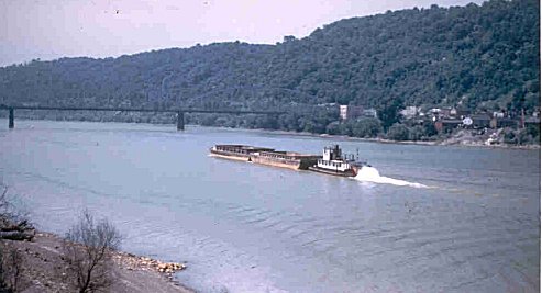 From our yard on the hill, the Monongahela River was always in view, and it dominated the valley. It originates deep in West Virginia and flows north to Pittsburgh where it joins the Allegheny to form the Ohio River. The water level of the river was controlled by dams and locks every six to ten miles, which maintained water deep enough for the river traffic, and was about 500 feet wide at the normal river pool.