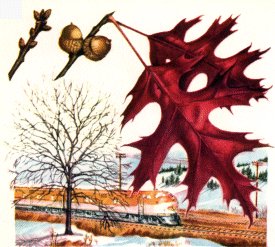 Scarlet Oak is so called because of the brilliant color of its autumn leaves. It is a common, robust, tapering, open-crowned tree of forest and roadside, preferring dry, sandy soils. The dark bark is strongly fissured. The leaf, 3 to 6 in. long, is smooth, shiny, with few or no hairs below, somewhat resembling Pin Oak. However, it is large than that of Pin Oak, with five to seven deep lobes.