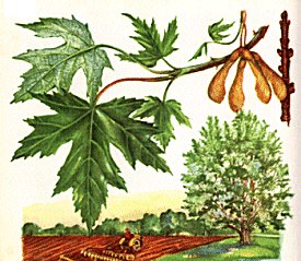 The grayish bark is smooth, becoming furrowed and scaly with age. Silver Maple is a tree of river banks and bottomlands. It grows rapidly and is planted along streets for shade. It is also used as an ornamental. The white soft wood is suited for millwork, spools and small articles.