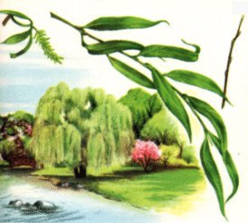 Weeping Willow, a native of China, was long ago introduced into Europe and the Middle East and later to this country. This is the willow of the Bible, the one that grew by the waters of Babylon. It is widely cultivated where soil is moist, especially in cities, as it is tolerant of smoke and grime. Weeping Willow is now wild in some areas.