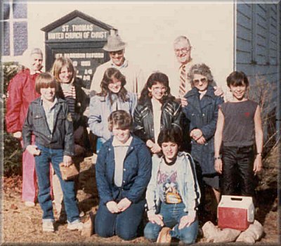 In 1950-51 the basement was added, which made space for more Sunday School rooms and for various social activities. In 1956 a back entrance was built to the church with money donated by the Sunday School. New carpet was purchased in 1958, and in 1966 the interior of the church was redecorated, The old wallpaper was taken off, the plaster was repaired and.the walls were painted. New hardwood flooring was laid, and anew mural was placed on the front wall of the church. In the early 1990s, the exterior was changed with a new roof and aluminum siding. Later, padded seat covers were added the the pews