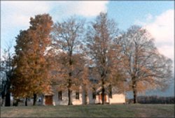 In 1817 Jacob Frantz of Westmoreland County came to this vicinity and bought the land and grist mill of Charles Campbell. Pastor John M. Steck of Greensburg followed his parishioner and held German services in this mill during the same year. In 1822 Jacob Frantz donated two acres of ground to the Reformed and Lutherans for church and burial purposes, to which was later added one-half acre by purchase from the Hart heirs. Before the Frantz land was legally conveyed, the donor died; but John Frantz carried out the wishes of his father and executed the deed. The first body laid to rest in this burial ground was that of John Allison, a schoolmaster.