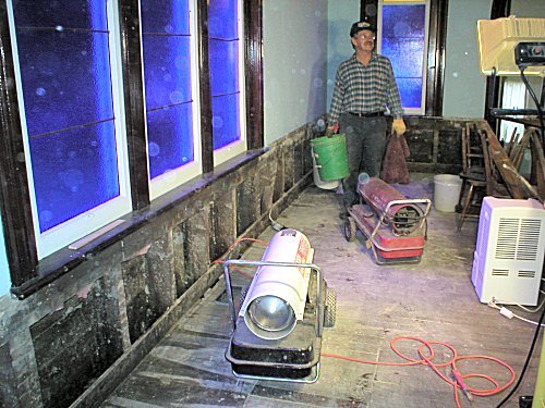 Clearing Alter Area - Treating Wainscotting and Spraying in Basement