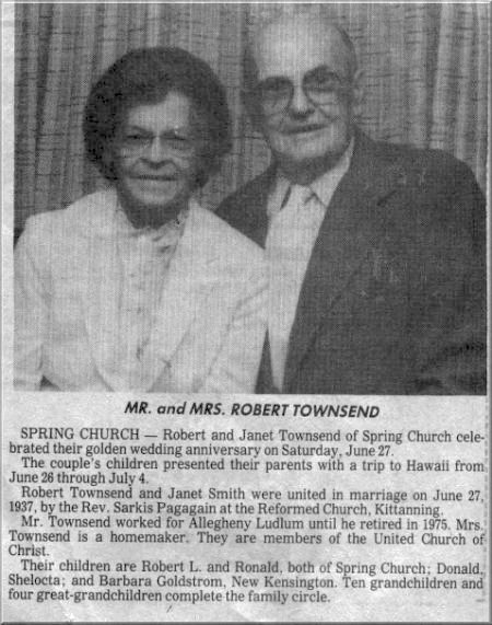 Front: Barbara, Janet, Bob Back: Ron, Don, Bobby Lee 1983 1987 50th Anniversary ~ 1987 Bob and Janet with Children Bobby Lee, Barbara, Don, Ron Barbara and Bobby Lee Townsend Robert and Barbara (Townsend) Goldstrom