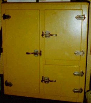 This pan had to be emptied frequently to avoid getting water all over the kitchen floor. Around 1913 electric refrigerators started to be mass produced.