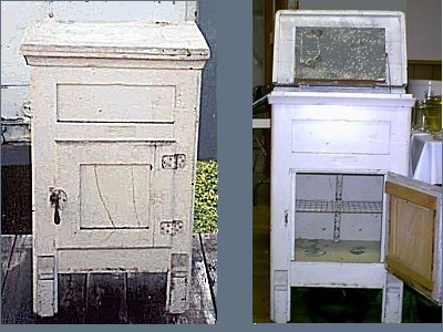 Iceboxes date back to the 1830’s. Most iceboxes were insulated with mineral wool, charcoal, cork, or flax straw fiber. The inside of the icebox was usually lined with galvanized metal, zinc, slate, porcelain, or wood. The outside was finished in oak, pine, ash or metal.