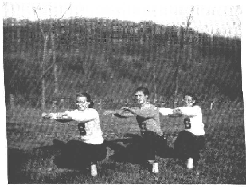 Cheerleaders: Phyllis Gath, Samuel Hughes and Marjorie Downey