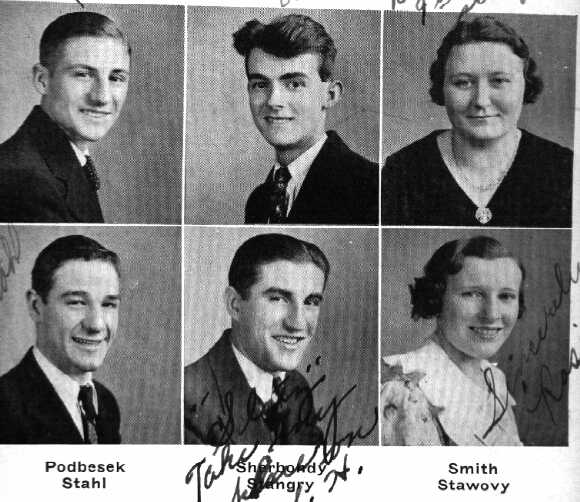 WOODROW SHERBONDYQuiet, slow, but willing to try, that's "Woody". Perhaps there is something back of his steady gaze and someday he may surprise us all. "Woody's" self-consciousness and shyness makes him 'lleery" of the girls. It is a general rule that those who talk the least accomplish the most. may he play his way to success on his violin and guitar.