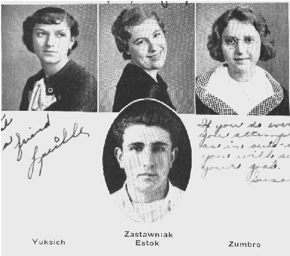 KATHRYN ZASTAWNIAKLast but not least comes Kathryn. the girls as well as the boys in our class have found in "Katie" a real companion. She is very well liked by all who know her and is an earnest worker in all her activities. She made a marvelous maid in "Nora, Wake Up." We will always remember Kathryn and her violin.