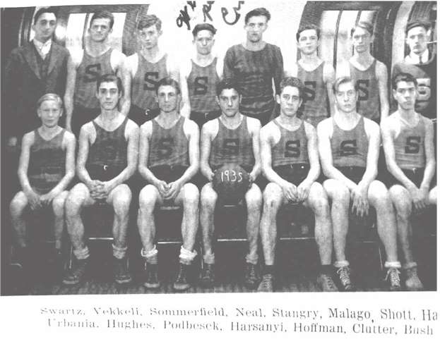 Entered in Section XIX of the W.P.I.A.L. the boys' team started out in our fifth season of basketball. Under their capable and never-tiring coach. Swartzx, and facing what seemed unsurmountable difficulties, the team has accomplished something of which we may be justly proud.